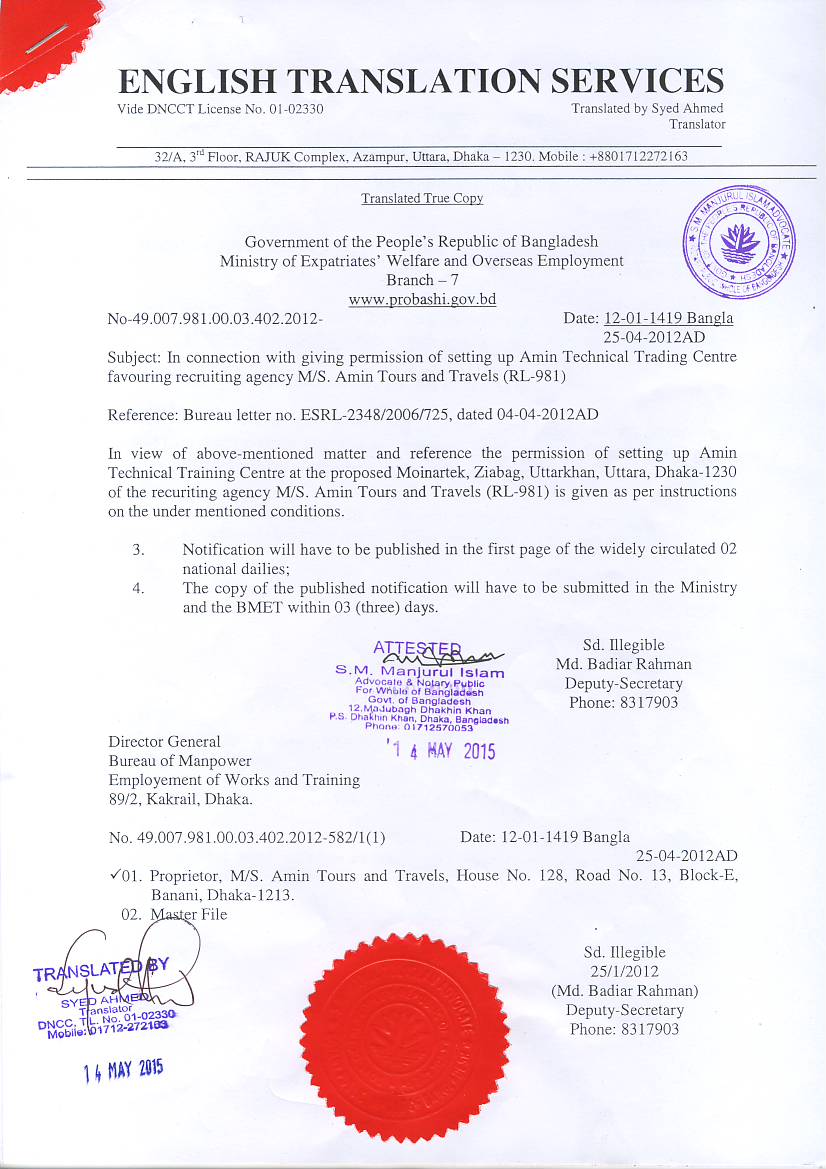 Translator permission by Bangladesh Govt.